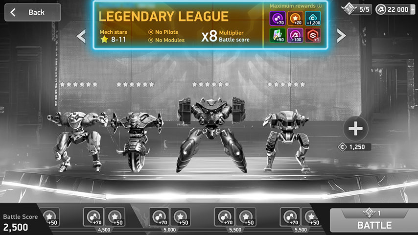 ¡Recuerda! Cuanto más alta sea la Liga, más Puntos de Batalla y recursos podrás obtener. Por ejemplo, después de alcanzar la Liga 4, tus Puntos de Batalla se multiplicarán por 5.