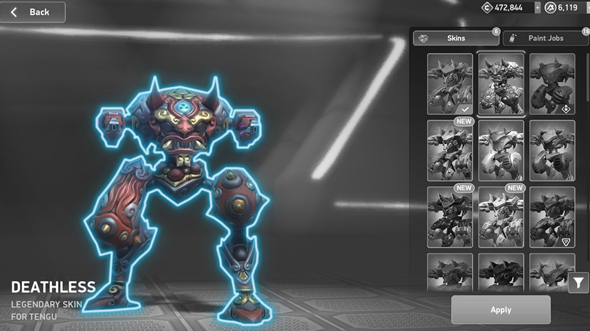 スキンを適用すると、モデルが完全に変更されます。下の画像のようにメカの全体的な見た目が変化し、元のモデルと比較して、伝説的かつ威圧的な印象となります。